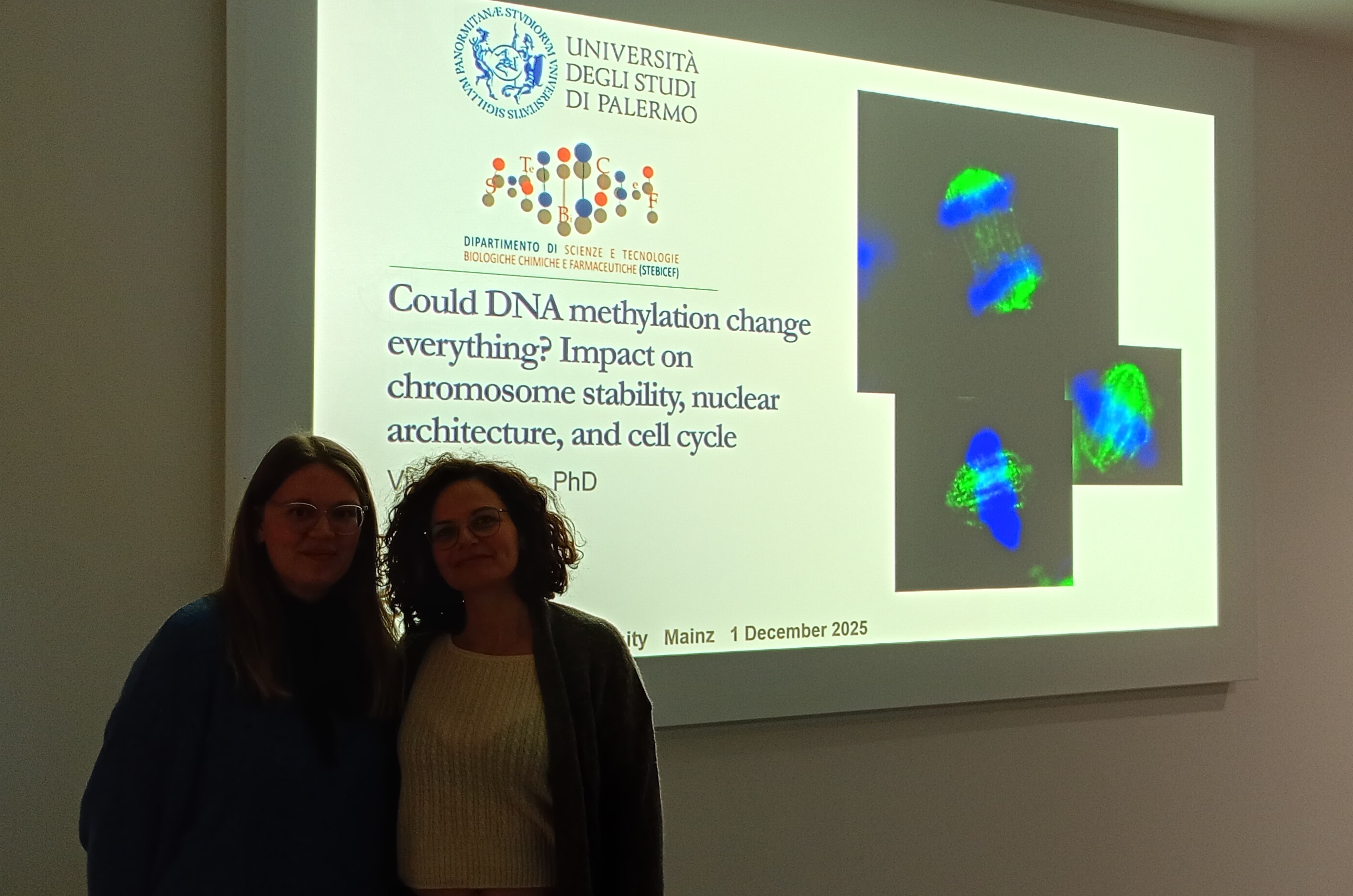 On 1 December 2025, Vanessa hosted our GenEvo seminar with Dr. Viviana Barra from the University of Palermo. Viviana is interested in cancer genetics, centromere and chromosomal segregation, and epigenetics. It was a pleasure having her visit us in Mainz!