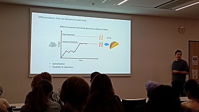 On Tuesday, 11 November 2025, Giulia, Ina and Amir hosted our GenEvo seminar with Prof Daniel Kronauer from The Rockefeller University, New York. He studies how insect societies evolve and function at the level of genes, brains, and behavior. Ants are his main study organisms, especially the clonal raider ant.